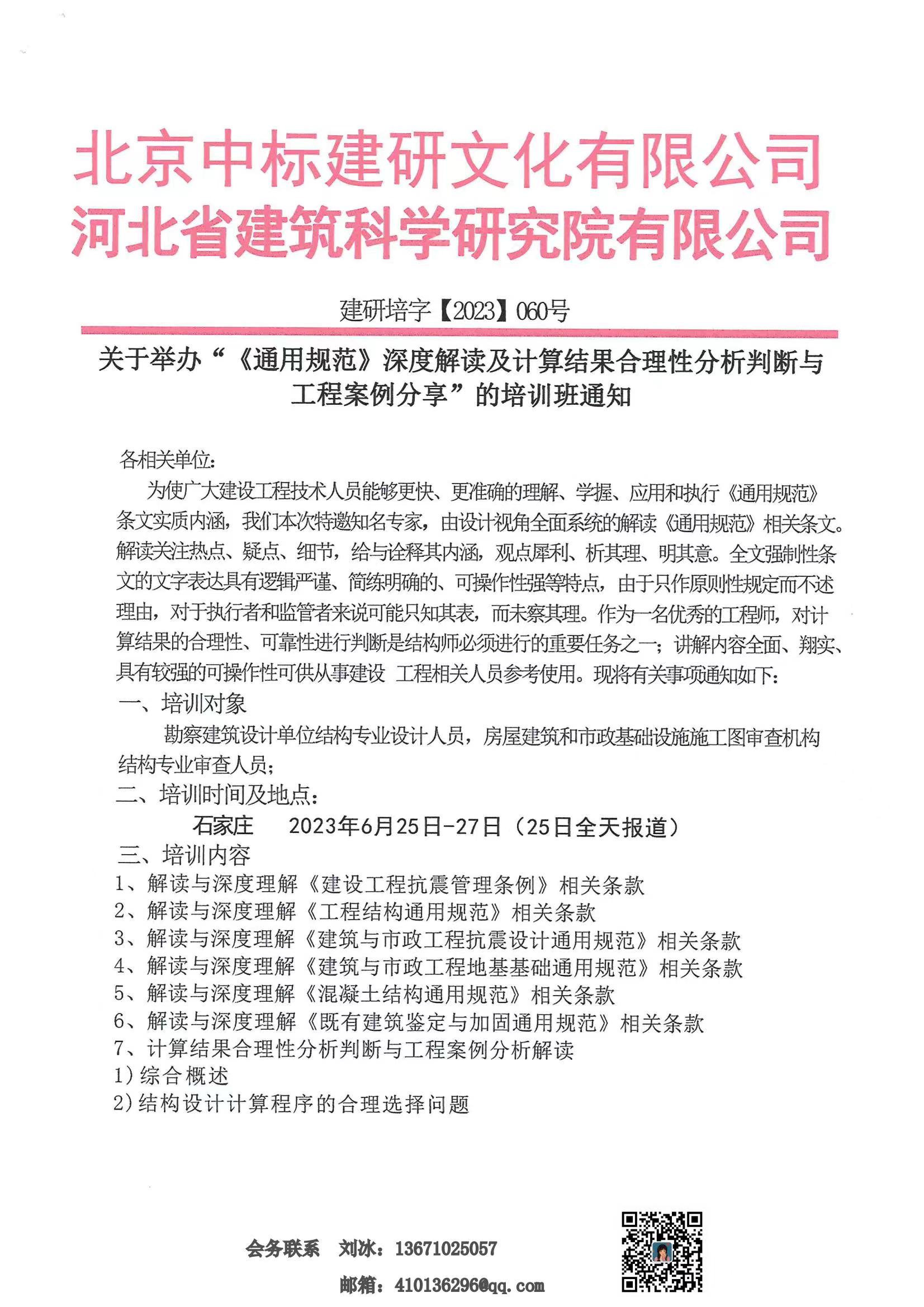 關(guān)于舉辦“《通用規(guī)范》深度解讀及計(jì)算結(jié)果合理性分析判斷與工程案例分享”的培訓(xùn)班通知